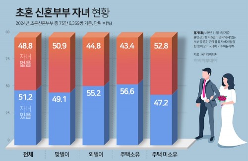 지난해 신혼부부 95만쌍 '역대 최저'…절반 가까이 '무자녀'