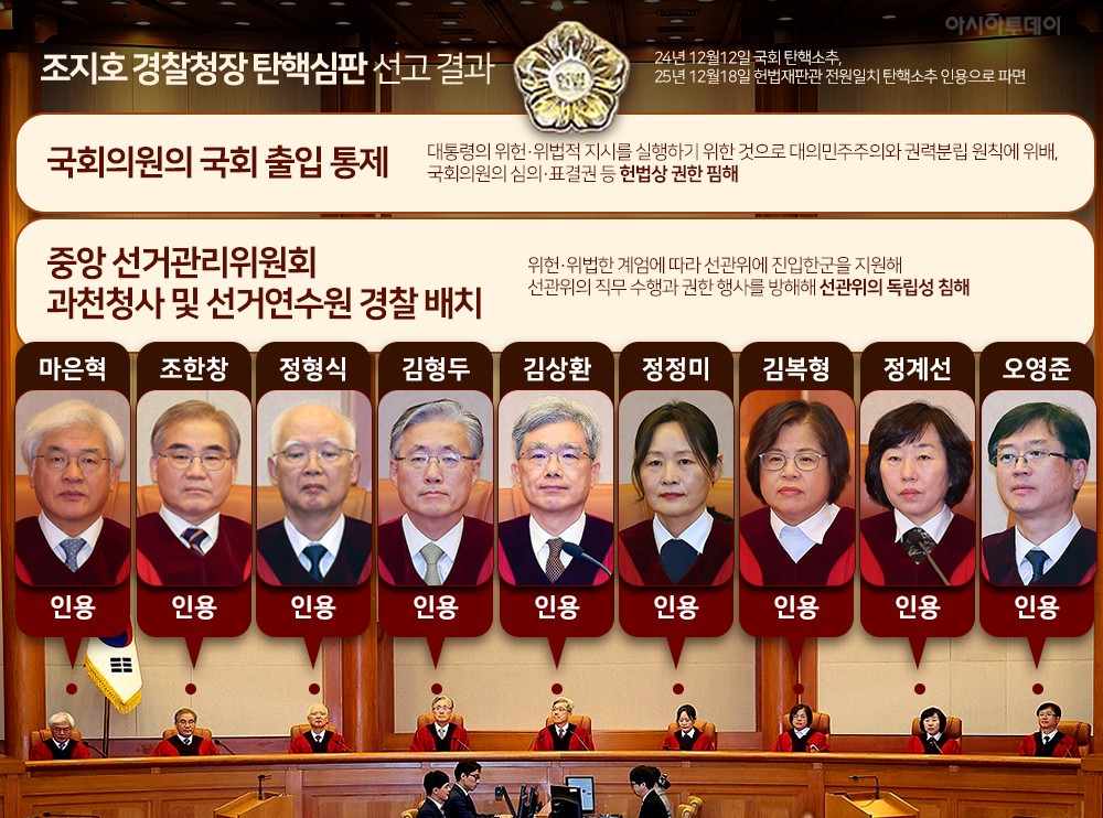헌재, 조지호 경찰청장 파면…재판관 전원일치 탄핵 인용