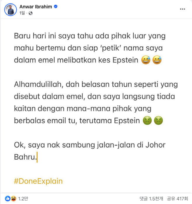 안와르 말레이 총리 “앱스타인과 무관”… ‘금광’ 언급..